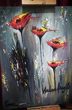 My canvases often carry symbols, doors, masks, silhouettes, storms, and horizons stories whispered in colour rather than words. I am fascinated by contrasts: softness and rebellion, vulnerability and strength, chaos and harmony. Every piece I create is a dialogue between what I lived and what I dreamed, between who I was and who I am still becoming.